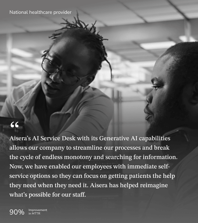 We were looking to boost employee productivity with increased auto-resolution and allow us to drive our AI IT chatbot journey. We are very pleased with the roll-out of AiseraGPT and are looking forward to expanding our footprint and capabilities with Aisera.