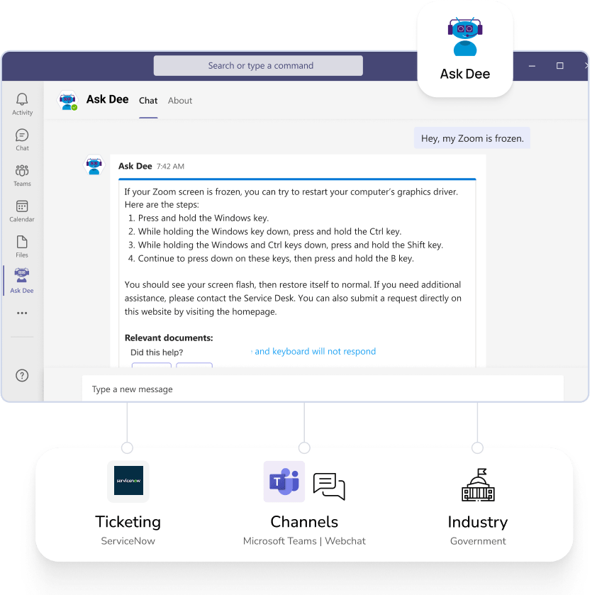 As a public entity, the City & County of Denver prioritizes efficiency, cost savings, and employee satisfaction to better serve its residents. However, manual IT processes and repetitive tasks slowed operations, increased costs, and limited service availability. To address this, they partnered with Aisera to launch Ask Dee, powered by Aisera AI Agents. Ask Dee delivers lightning-fast self-service, using domain-specific LLMs to automatically resolve requests like software provisioning, account troubleshooting, and hardware issues. By streamlining IT support, this solution boosts employee productivity, enhances service availability, and ensures more efficient operations.