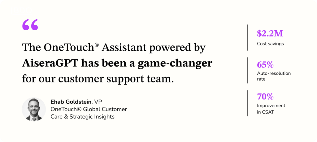 See Aisera’s enterprise-class system of AI agents in action Book a custom demo The world’s top brands trust Aisera Customer trust: the ultimate recognition “Excellent Overall experience with Aisera” Product Manager, Employee Enablement “Good AI platform, with high accuracy” Software developer “A game-changer in AI solutions” Architect “Aisera deflects 90% of tickets, bolsters agent efficiency” Manager of IT services