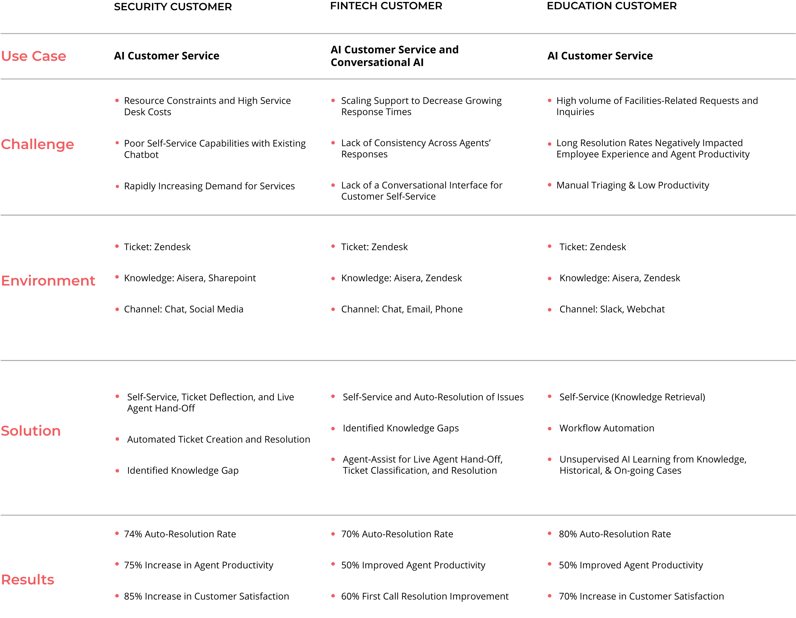 “We achieved business outcomes within days, and are now seeing over 70% ticket deflection.”