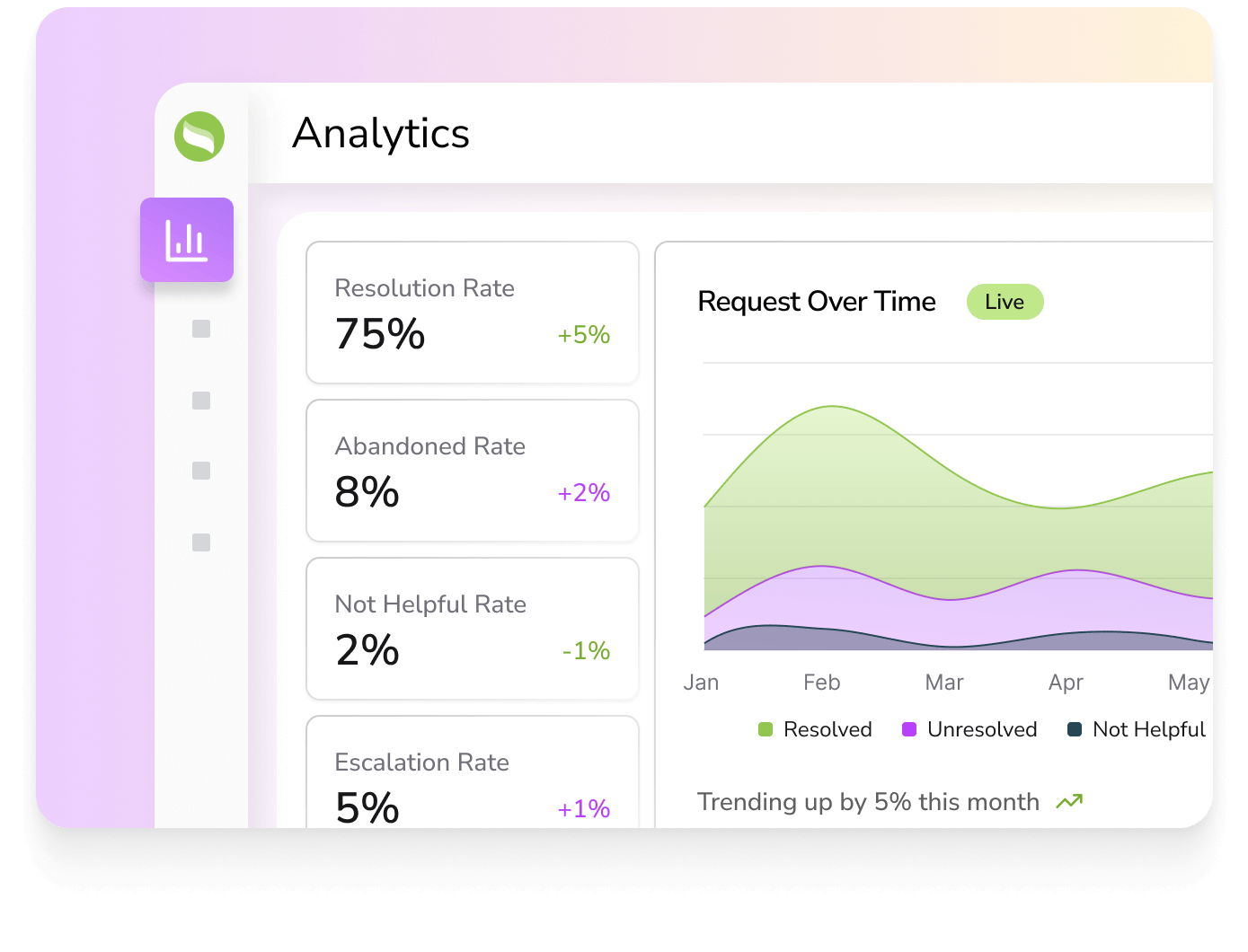 Get a bird’s-eye view into the performance of your AI agents with customizable dashboards and automated reports for continuous improvement.