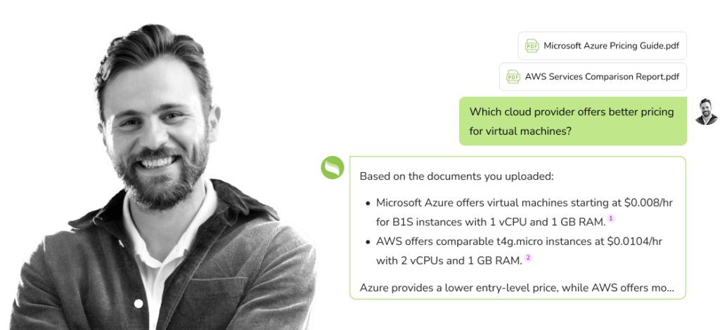 Upload multiple documents and ask anything to instantly find exactly what you need, no more wasted time or guesswork.