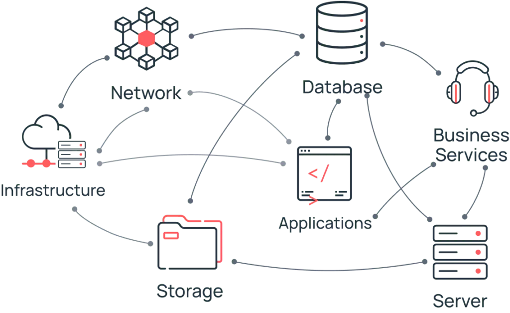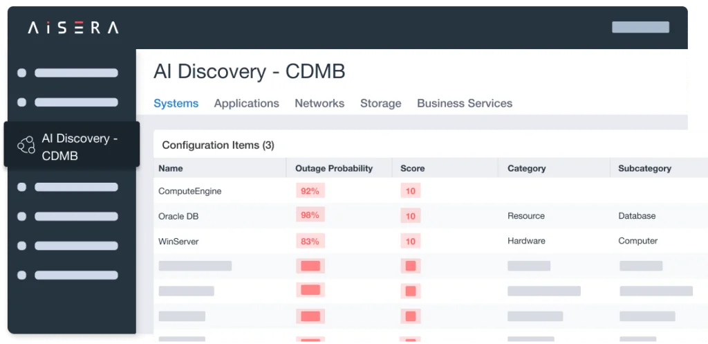 Aisera builds the Configuration Items across Systems (compute, VM, Containers), Applications, Networks, Storage, and Business Services, allowing you to gain an end-to-end view of your entire tech stack.