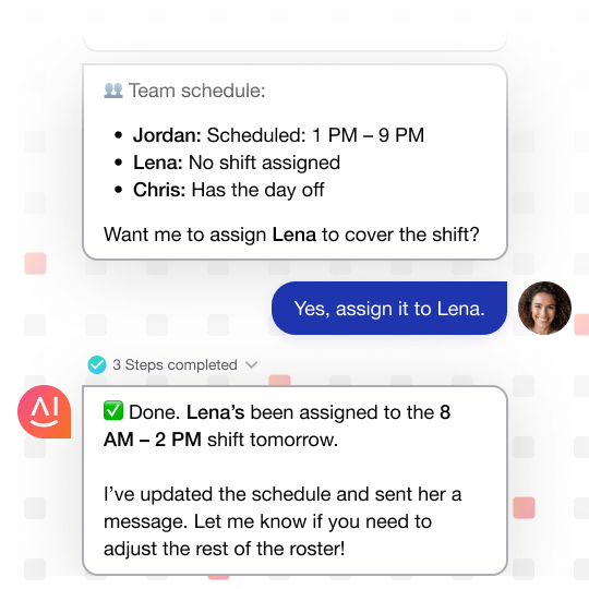 Automate routine tasks like inventory management, employee scheduling, and order processing, reducing operational costs and freeing up human agents for high-value activities.