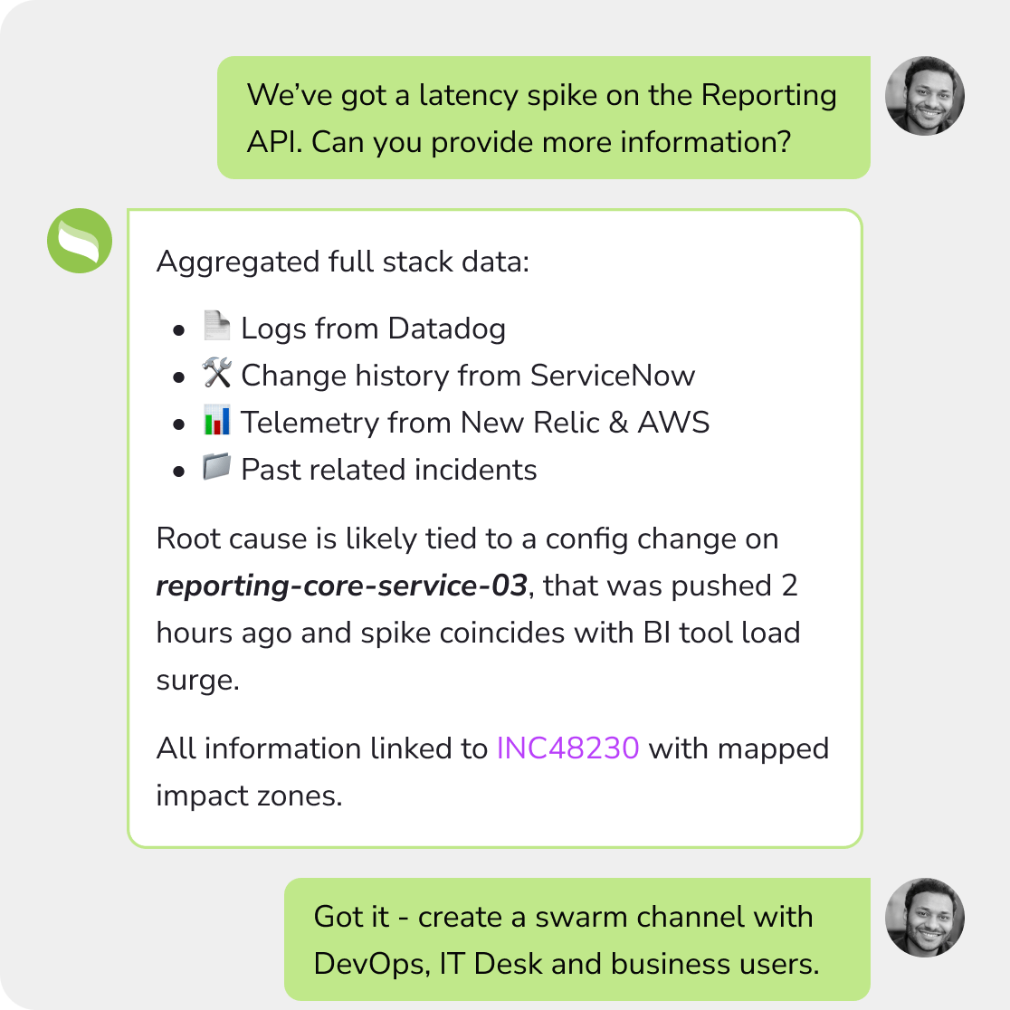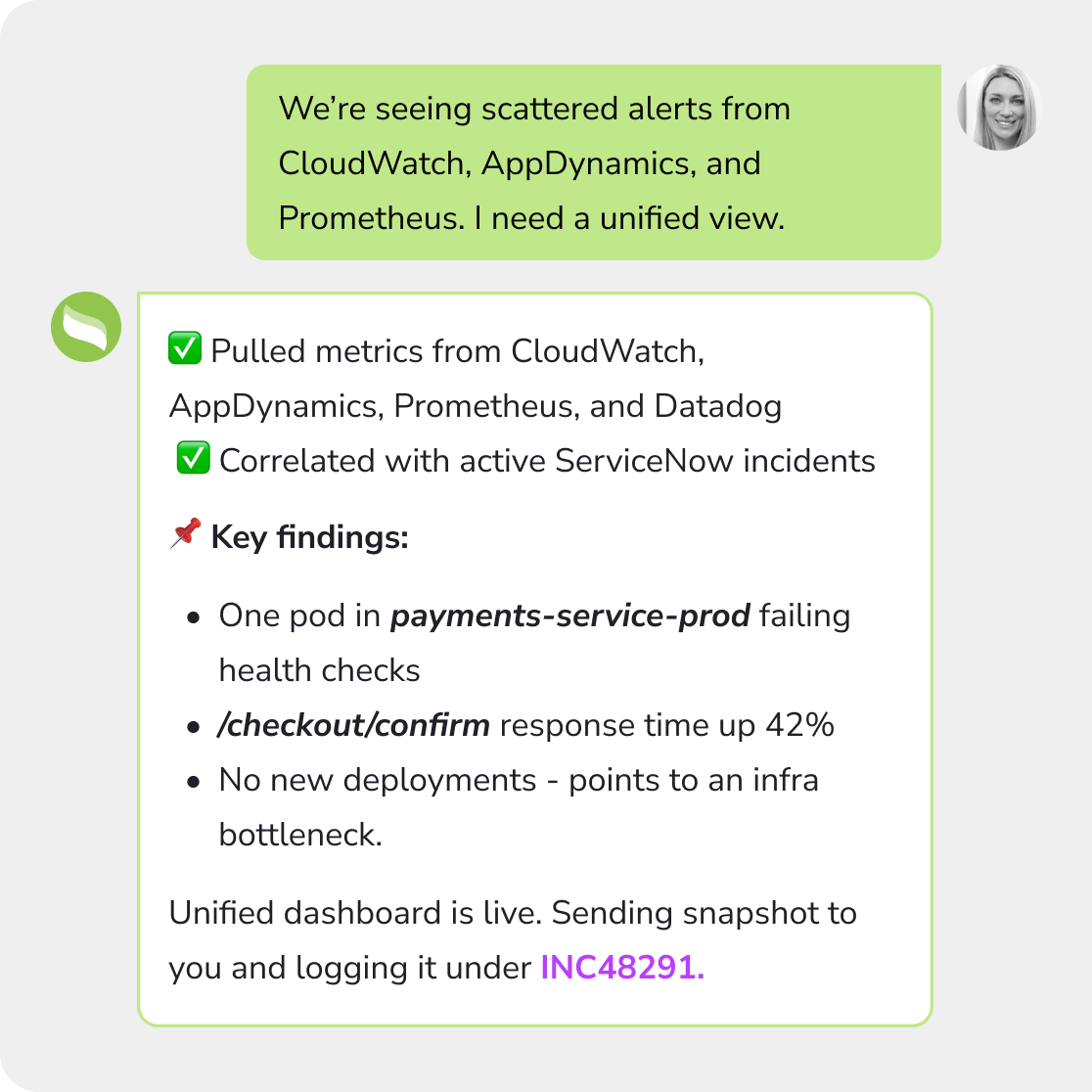 Empower DevOps, SRE, and ITOps teams with real-time insights that consolidate data from multiple sources, reducing manual investigation and enabling them to focus on higher-value tasks.