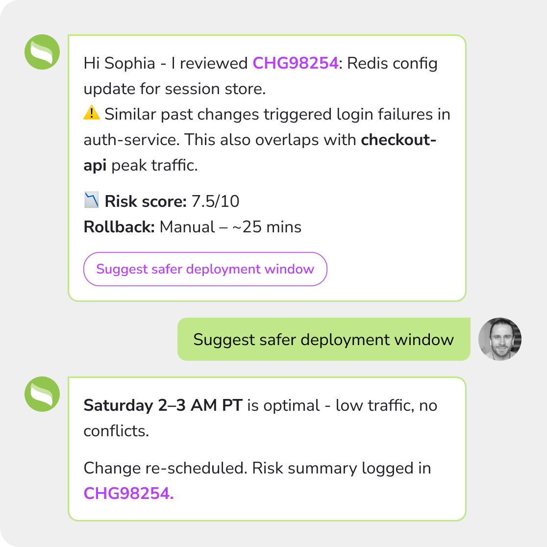 Ensure system-wide changes are implemented smoothly without causing disruptions or outages with the help of advanced risk assessment for proposed changes. By analyzing major historical incidents and the change data and metadata, Aisera AIOps can predict the potential impact of changes in the IT environment.